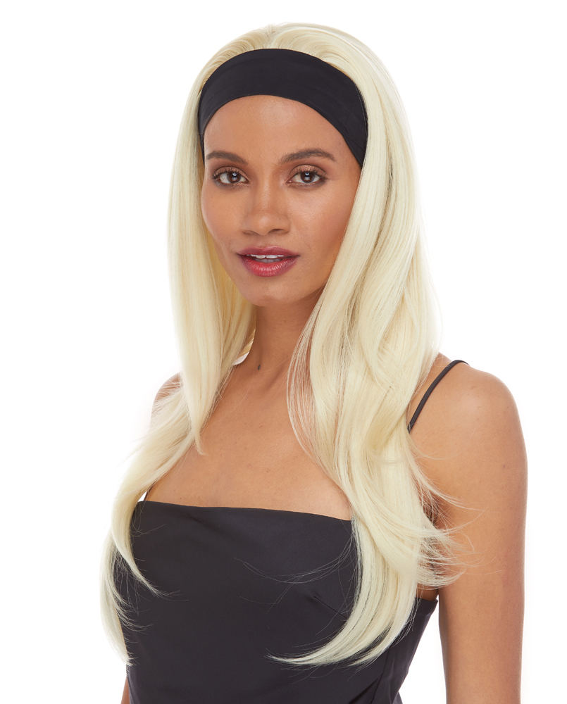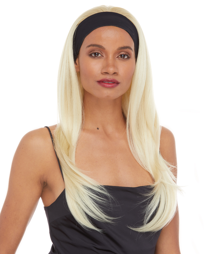 SILKY LONG TRESSES ARE MARKEDLY SMOOTH ON THIS HEADBAND WIG. COMES WITH A BLACK HEADBAND WITH ADJUSTABLE VELCRO STRAPS.