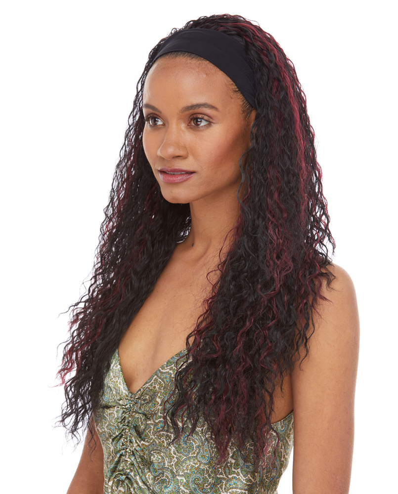 THIS HEADBAND WIG SHOWCASES LONG AND GORGEOUS WATER WAVES. ACHIEVE ONE OF THE QUICKEST HAIRSTYLES IN JUST SECONDS WITH OUR NATURAL LOOKING HEADBAND WIG. COMES WITH AN ATTACHED BLACK HEADBAND WITH ADJUSTABLE VELCRO STRAPS.