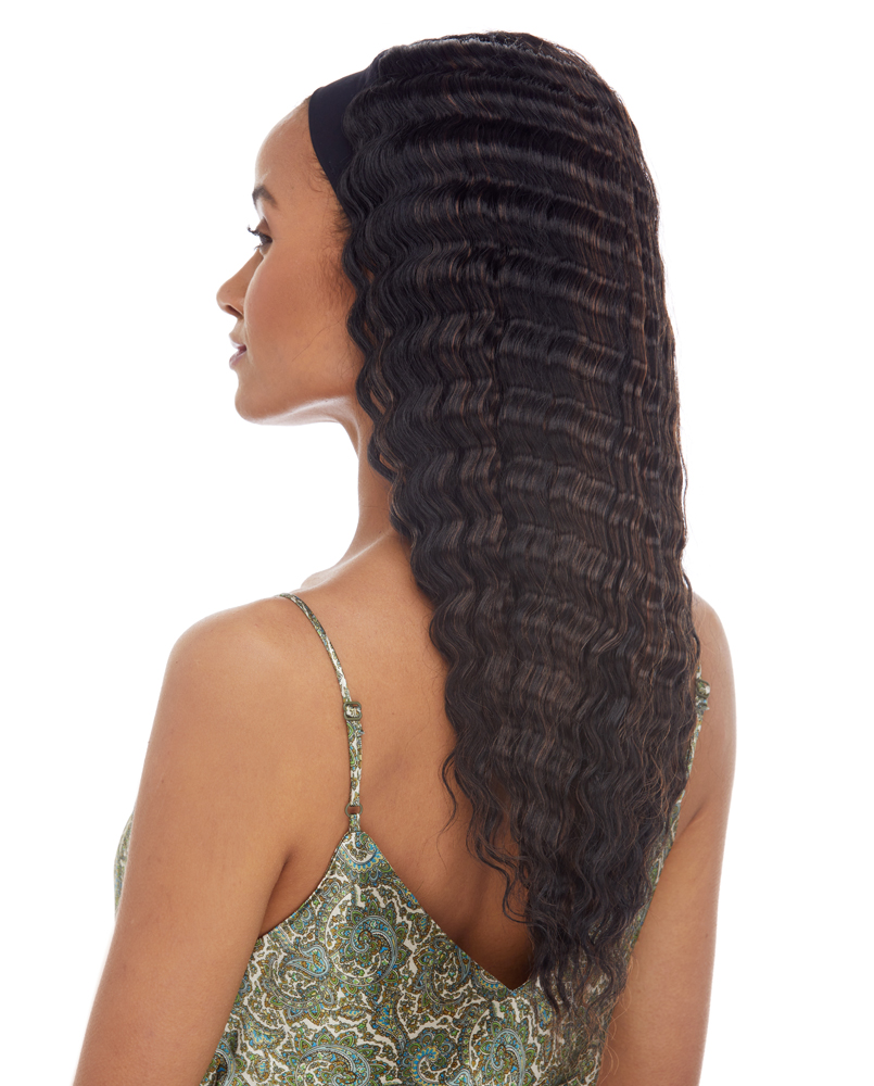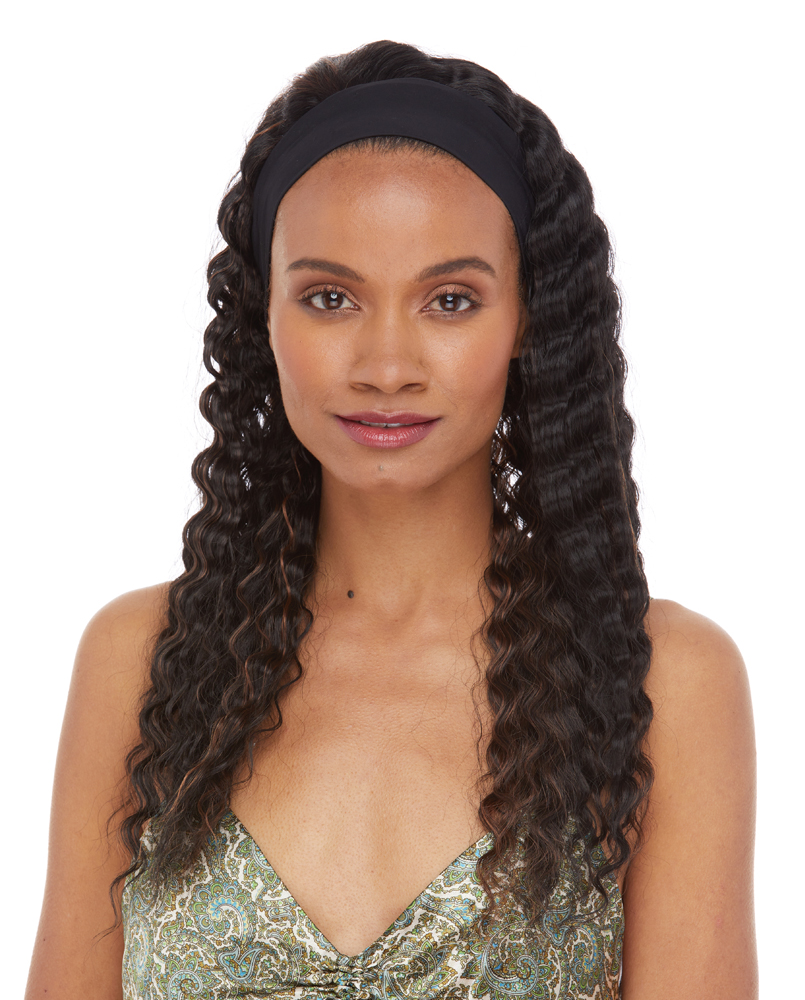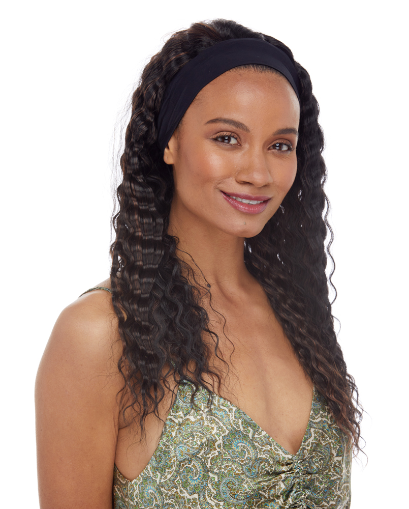 LUXURIOUS DEEP WAVE CURLS MAKE THIS HEADBAND WIG A MUST-HAVE WITH ITS EASY GORGEOUS STYLE. COMES WITH A BLACK HEADBAND WITH ADJUSTABLE VELCRO STRAPS.