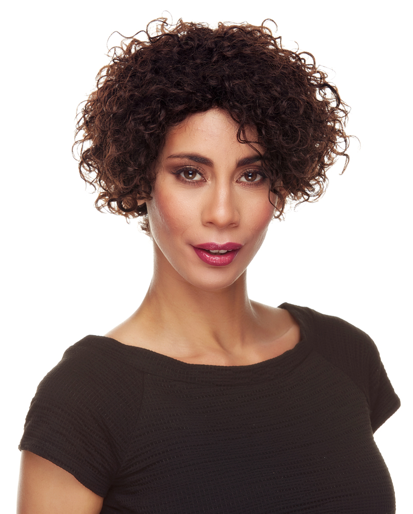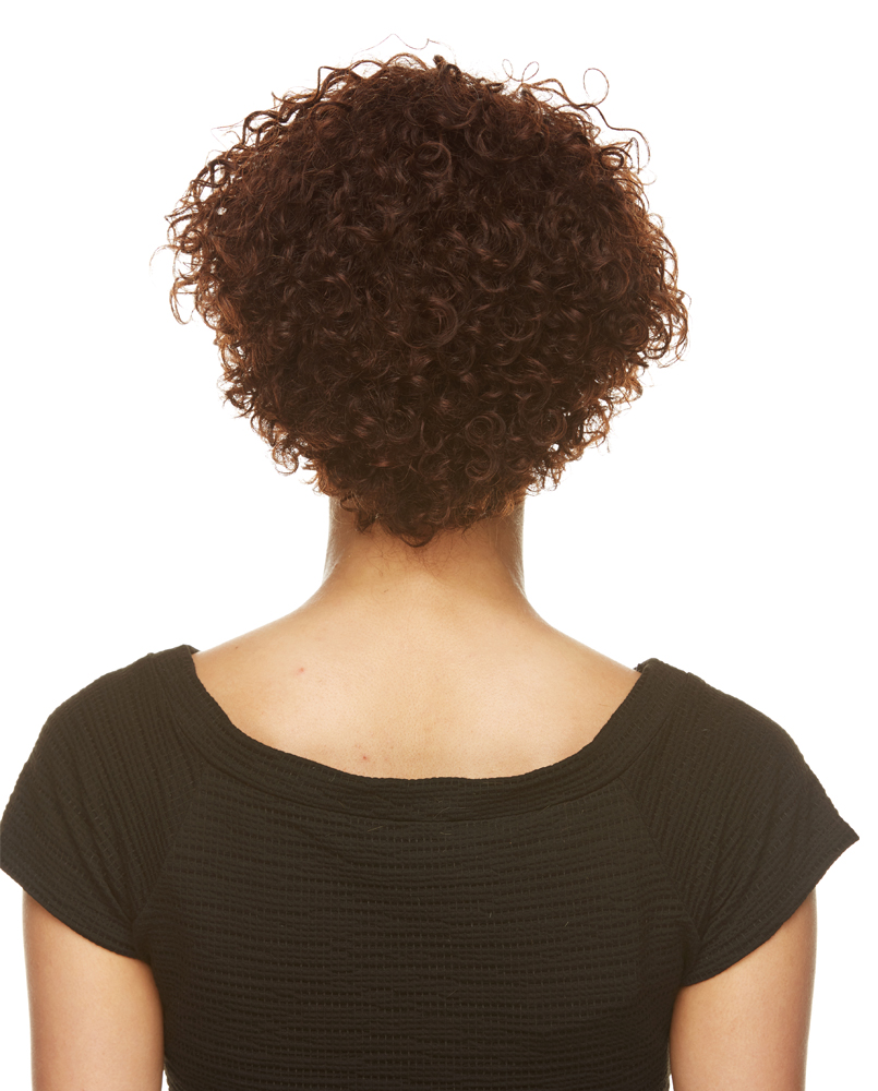 A SPUNKY SHORT TAPERED CUT WITH KINKY CURLY TIGHT CURLS.