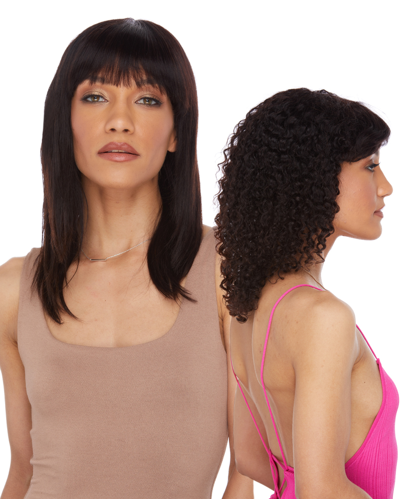 A WET AND WAVY HUMAN HAIR WIG THAT MIMICS YOUR OWN HAIR, SPRINGS INTO BEAUTIFUL BOUNCY CURLS WHEN WET AND STRAIGHTENS TO A GLOSSY FINISH WITH A LITTLE HELP FROM YOUR FLAT IRON. WHEN STRAIGHTENED, EPIPHANY HAS RAZOR CUT ENDS THAT TAPER NATURALLY TO A U CURVE. WHEN WET, HER CURLS BOUNCE INTO TIGHT KINKY RINGLETS. IF YOU LOVE THIS STYLE BUT WANT IT A TAD BIT SHORTER, CHECK OUT OUR PIPPA WIG.