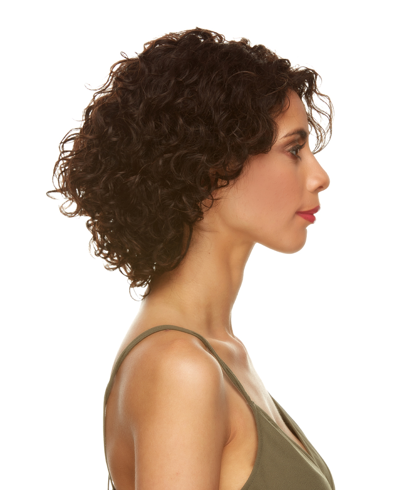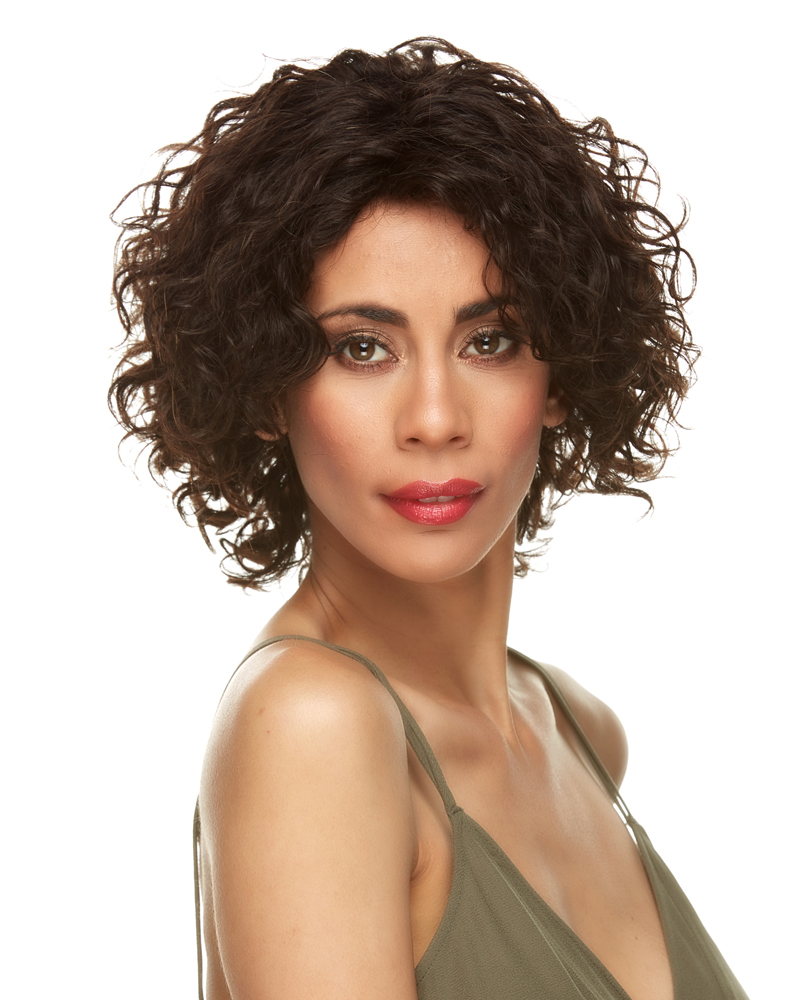 A SHORT SHARP ANGLE CUT STYLE WITH FLUFFY LAYERS AND LOOSE DEEP CURLS.