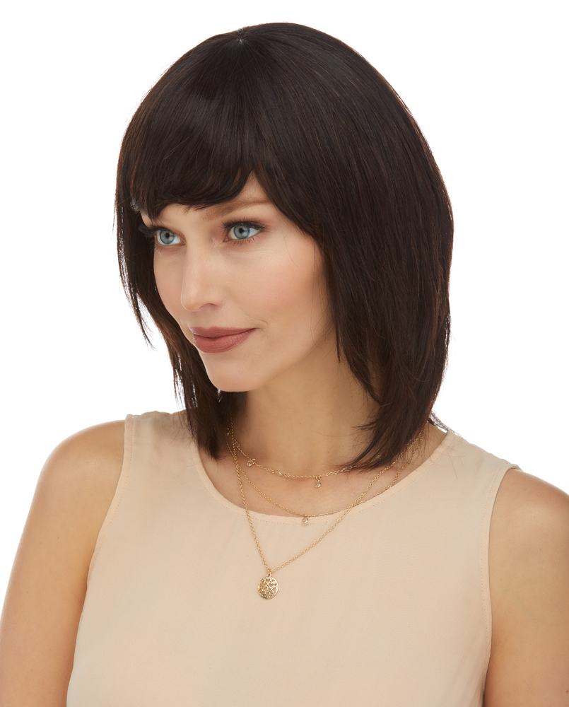NATURAL LOOKING PAGE BOY SHORT STYLE WITH SIDE SWEPT BANGS.