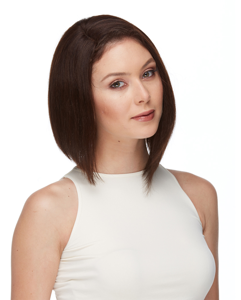 A SHORT AND EASY STYLE TO WEAR WITH AN ANGLED BOB CUT AND A NATURAL SIDE PART. THIS WIG OFFERS SOFT AND DELICATE SWISS LACE FOR COMFORT.