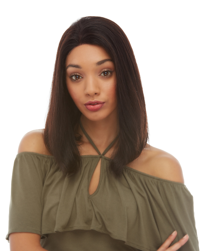 AN ASYMMETRICAL STRAIGHT MID LENGTH ULTRA CHIC HAIRSTYLE. IT HAS A 4inch X 4inch SILK BASE WHICH OFFERS THE VERSATILITY OF PARTING THE HAIR WHERE YOU WANT.