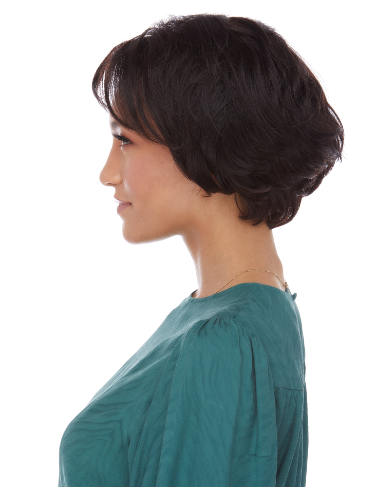 THIS 13″x5″ EAR TO EAR, FREE PART LACE FRONT WIG SHOWCASES SMOOTH TRESSES FOR THAT BLOW DRYED LOOK. STYLE THE BABY HAIR FOR A NATURAL LOOK THAT’S ALL YOUR OWN. THIS SHORT STYLE REACHES JUST BEYOND YOUR CHEEKBONES AND SHOWS OFF YOUR NECKLINE. THIS WIG IS SECURED WITH COMFORT BANDS AT THE NAPE TO MAKE WEARING A WIG FEEL AS GOOD AS YOU LOOK.