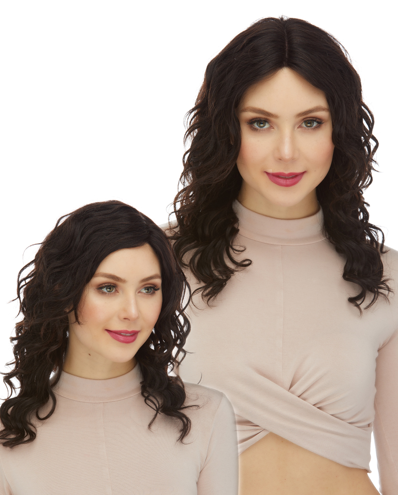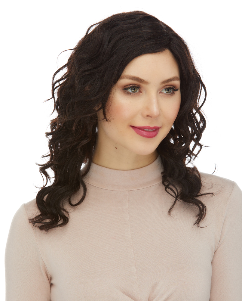 FRANCESCA HAS SOFT NATURAL CURLS THAT ARE LAYERED JUST RIGHT TO LOOK FULL BUT NOT WEIGH YOU DOWN. THE HAIR IS CUT IN A V SHAPE WHEN VIEWED FROM THE BACK. THIS WIG FEATURES NO EAR TABS AND NO NAPE TAB SO YOU CAN TWIST THE WIG TO CUSTOMIZE WHERE YOU WANT THE PARTING TO BE. THIS SPECIAL FEATURE HELPS THE WIG TO SUIT EVERY FACE SHAPE.