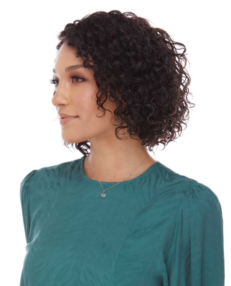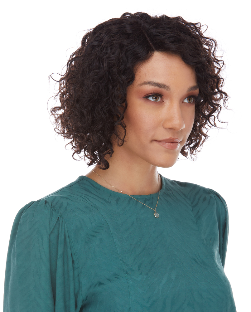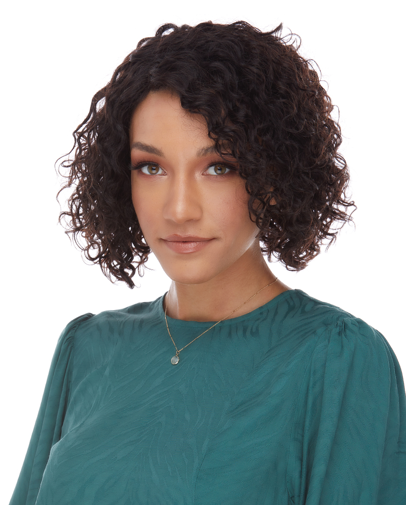OUR WIG OF CHOICE FOR A PLAYFUL DAY OUT IS THE TRULY BECAUSE IT IS TRULY ONE THAT STAYS OUT OF YOUR WAY BUT STEALS THE SHOW. IT IS LIGHT AND CUPS THE HAIR LINE PERFECTLY WITH ITS NATURAL SIDE PART. THIS VERSATILE STYLE IS COMPLIMENTED BY THE PARTIAL CURL AND PARTIAL FREY IT IS CRAFTED WITH.