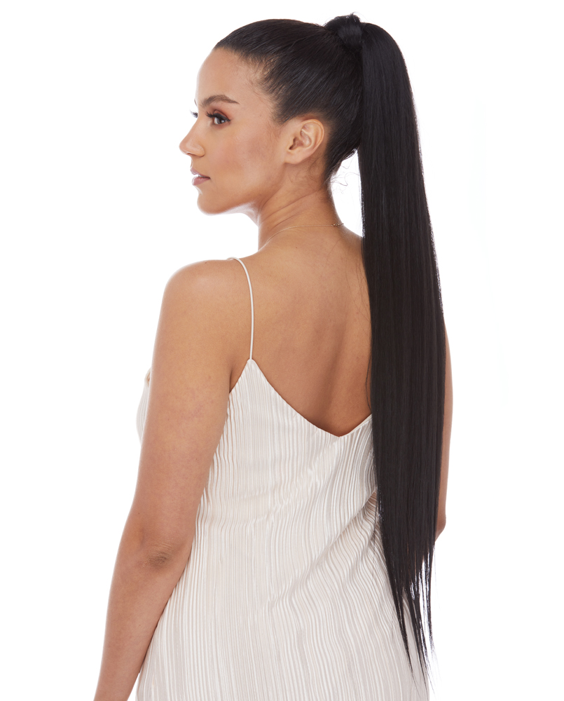 A STRAIGHT AND ULTRA SLEEK WRAP PONYTAIL IS A SIMPLE SOLUTION FOR MOST HAIR TYPES AND LENGTHS. SIMPLY ATTACH THE PONYTAIL TO YOUR OWN HAIR WITH THE SMALL COMBS AND WIND THE LONG HAIR STRAP AROUND AND SECURE WITH PINS. BEST OF ALL, ITS HIGH HEAT FRIENDLY AND CAN BE CUSTOMIZED JUST THE WAY YOU LIKE IT.