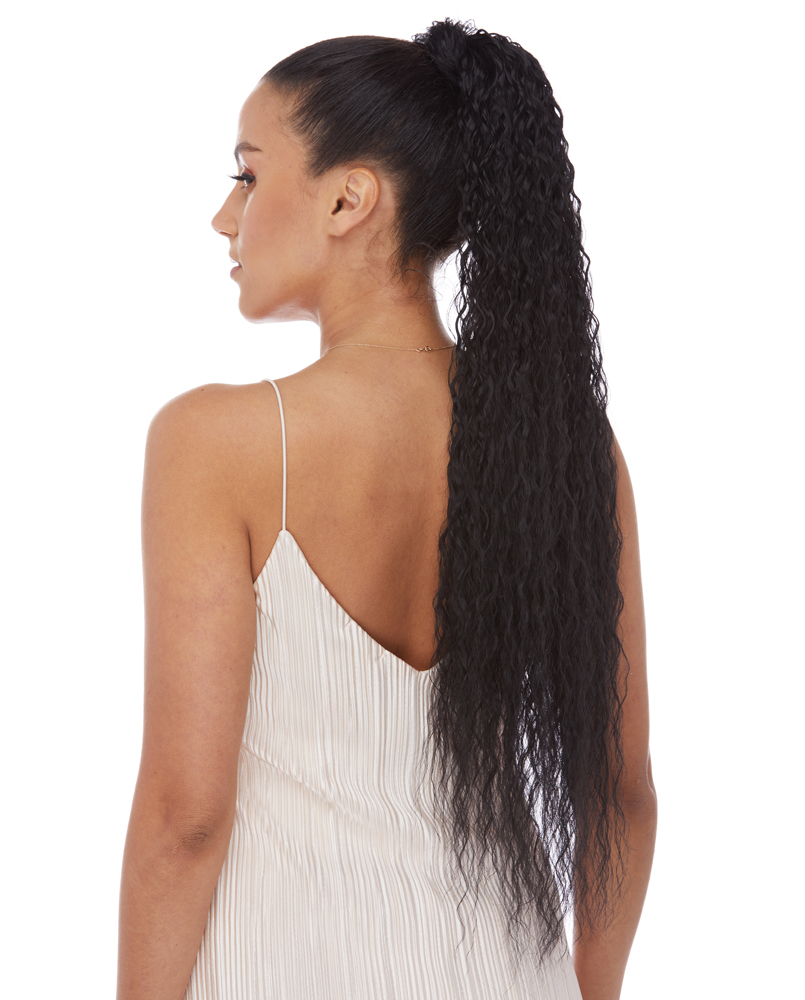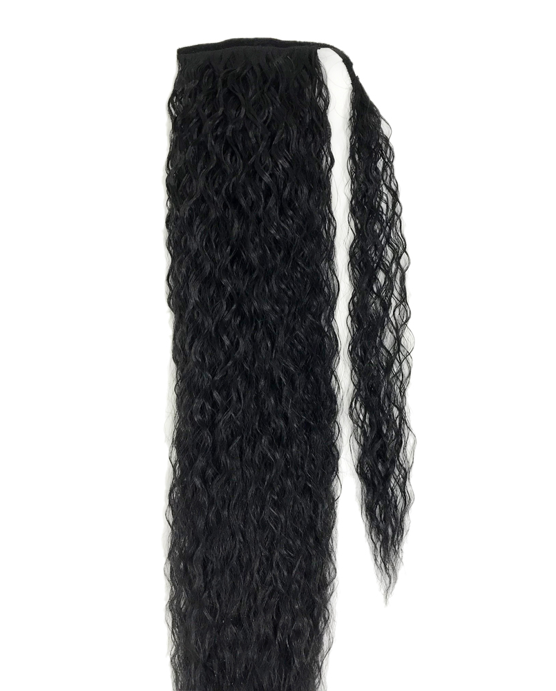 CRIMPY CURLS AND FULL OF BODY, THIS WRAP PONYTAIL IS A SIMPLE SOLUTION FOR MOST HAIR TYPES AND LENGTHS. SIMPLY ATTACH THE PONYTAIL TO YOUR OWN HAIR WITH THE SMALL COMBS AND WIND THE LONG HAIR STRAP AROUND AND SECURE WITH PINS. BEST OF ALL, ITS HIGH HEAT FRIENDLY AND CAN BE CUSTOMIZED JUST THE WAY YOU LIKE IT.
