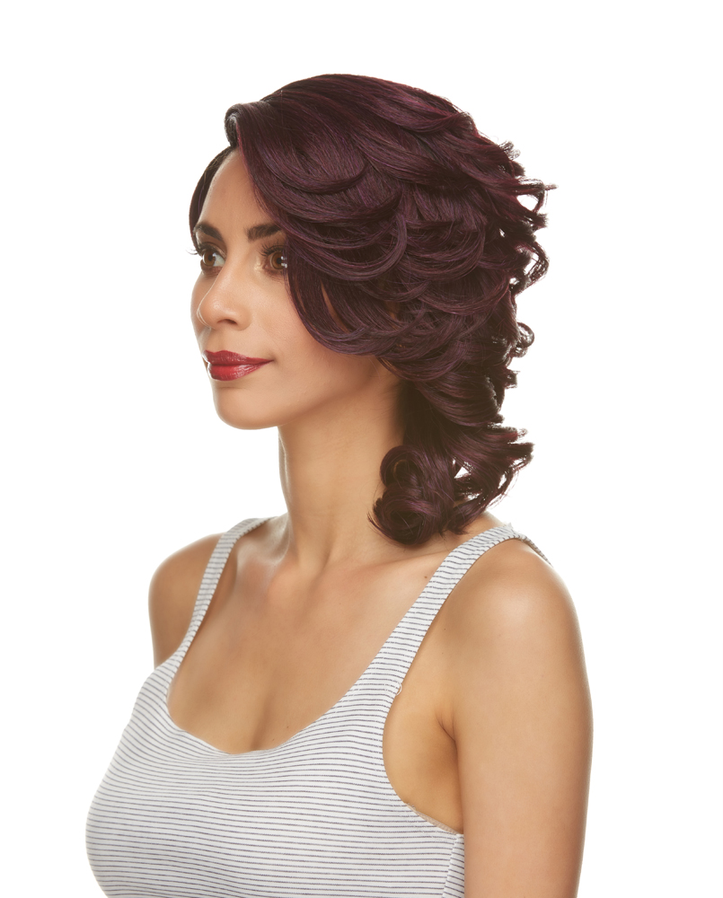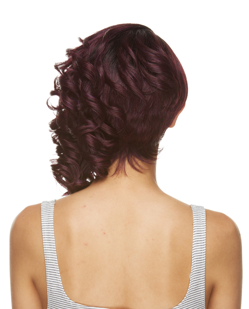 COOL AND TRENDY STYLE WITH HALF SHORT TAPERED AND THE OTHER HALF WITH COIFFED TO PERFECTION RINGLET CURLS.