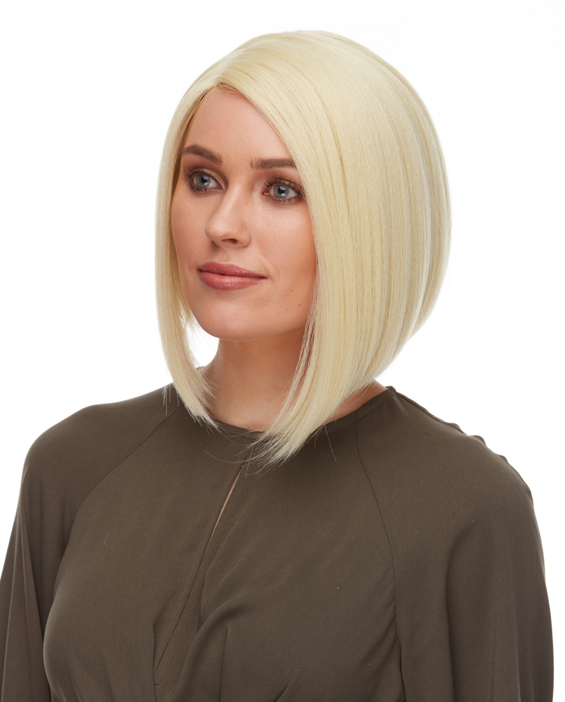 THIS WIG IS A SEXY ANGLED BOB PARTED TO THE SIDE. SIMPLE YET DRAMATIC.