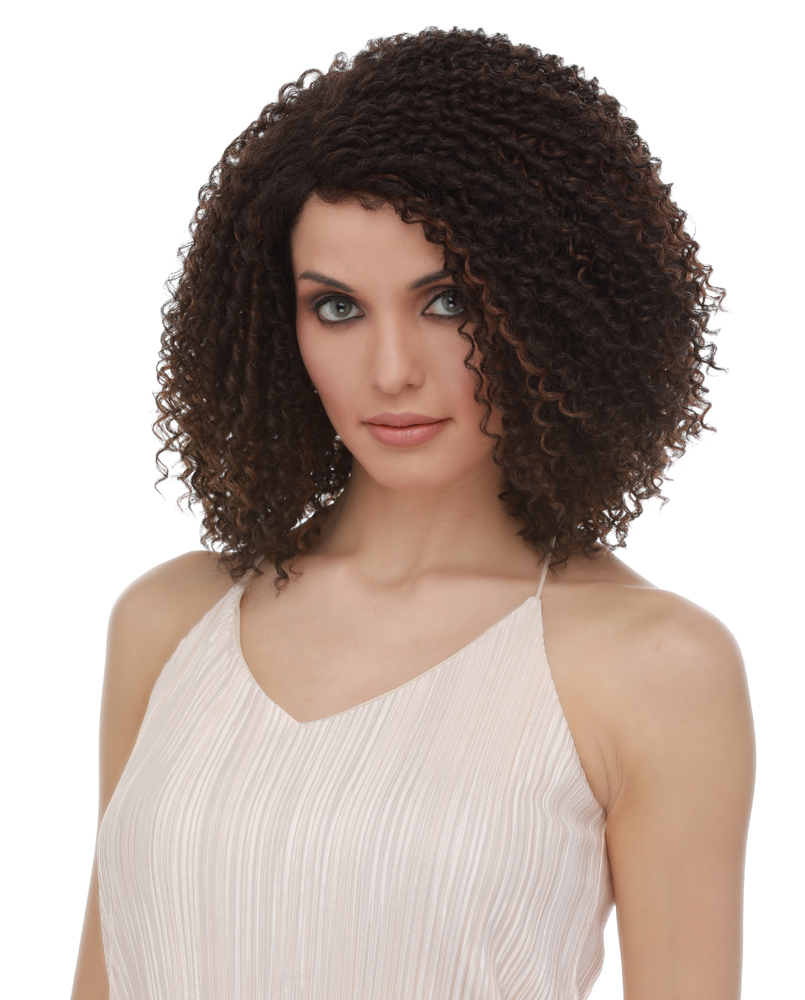 A FUN, SHORT, CORKSCREW CURL FULL OF VOLUME AND A SIDE PART. THIS WIG USES REMY TEXTURED FIBERS SO YOU WILL BE SURE TO FIND YOURSELF RUNNING YOUR FINGERS THROUGH YOUR HAIR ALL TOO OFTEN.