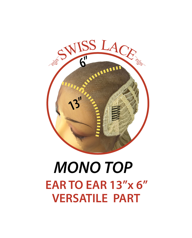 AN EAR TO EAR 13″X6″ SWISS LACEFRONT WIG WITH GORGEOUS BODY WAVES THROUGHOUT. THE 13″ X 6″ MONO TOP PROVIDES THE VERSATILITY OF HAVING NO HAIR PART, SO PART YOUR HAIR TO SUIT YOUR OWN FACE SHAPE.