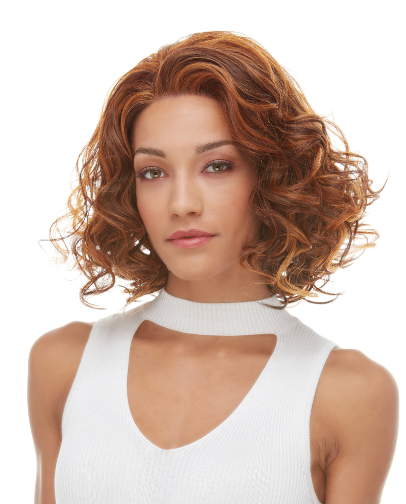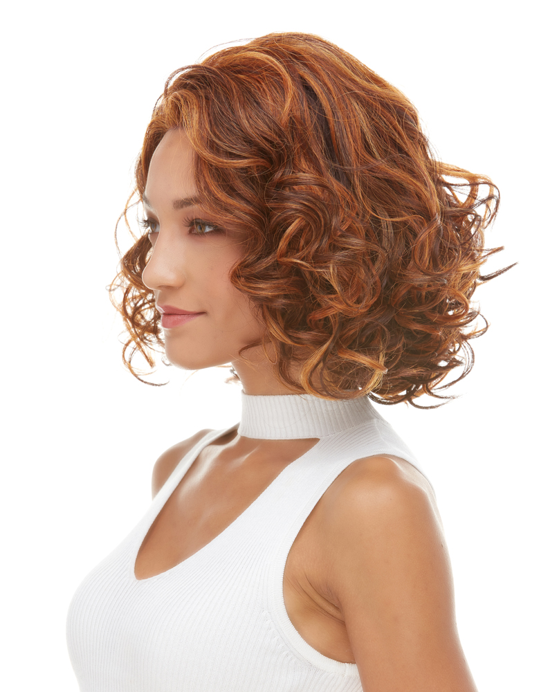 BIG BOUNCY CURLS ADD VOLUME TO THIS SHORT SWISS LACE BASE WIG. THIS WIG ALSO FEATURES THE VERSATILITY OF HAVING NO HAIR PART, SO PART YOUR HAIR TO SUIT YOUR FACE SHAPE.