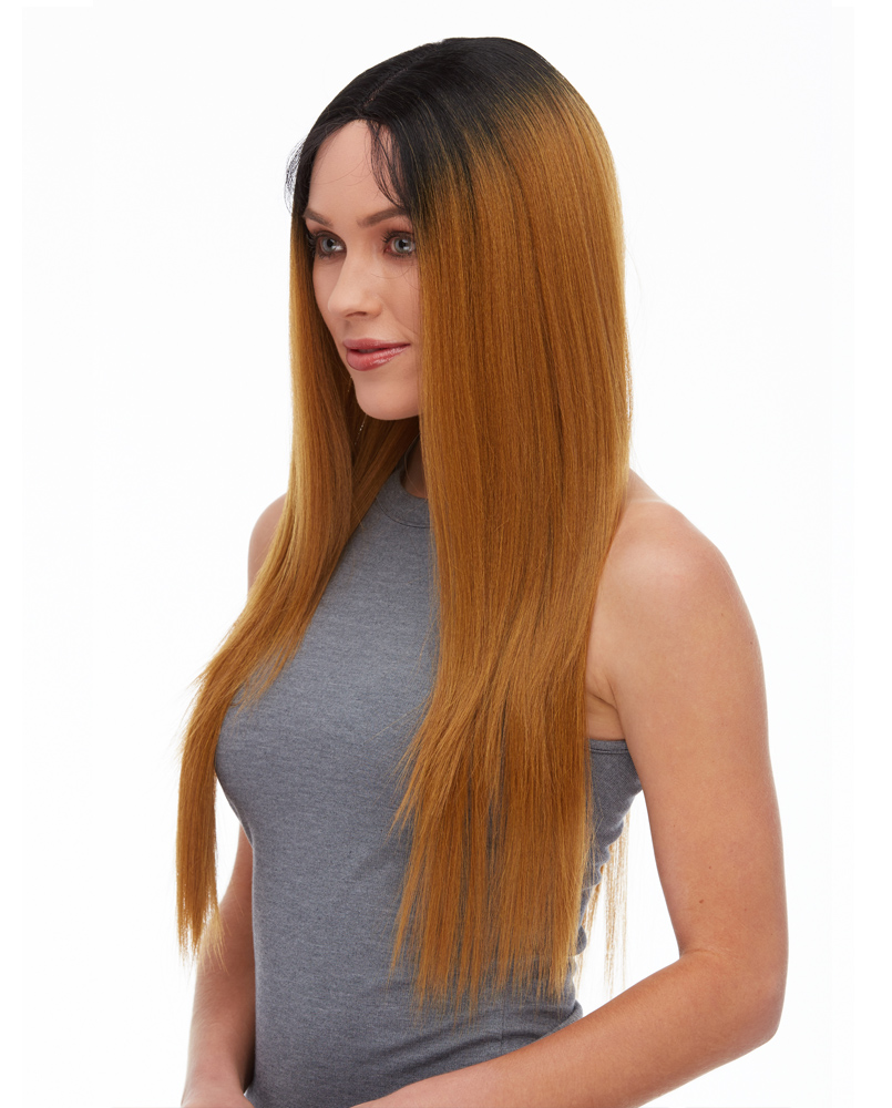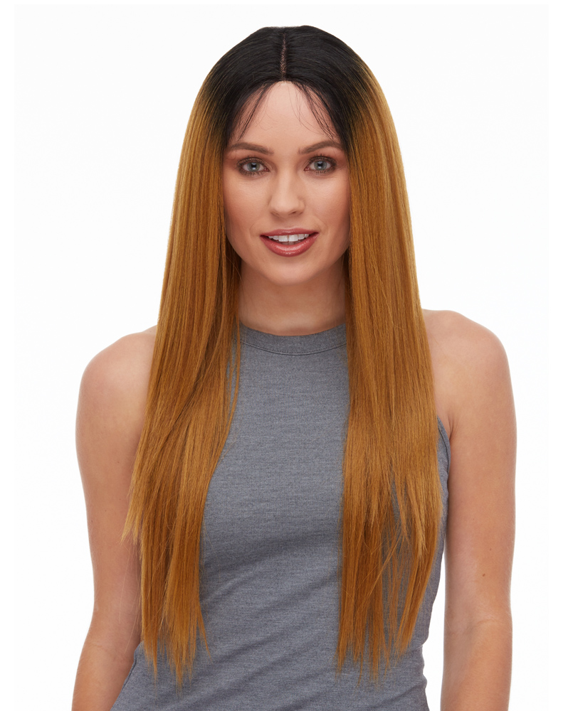 A SIMPLE AND STRAIGHT LACEFRONT WIG WITH A DEFINED CENTER PART. THIS WIG COMES WITH NATURAL LOOKING BABY HAIR ALONG THE HAIRLINE TO GIVE IT THE MOST NATURAL LOOK. TRIMMING AND STYLING THE BABY HAIR MAY BE NECESSARY.