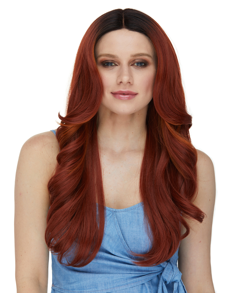GORGEOUS LAYERS FRAMING THE FACE ARE CURLED AWAY FROM THE FACE FOR THE ULTIMATE GLAM LOOK. PARTED WITH A CENTER PART GIVES THIS LOOK A MODERN VIBE. A KNOCKOUT LACEFRONT WIG FOR ALL FACE SHAPES.