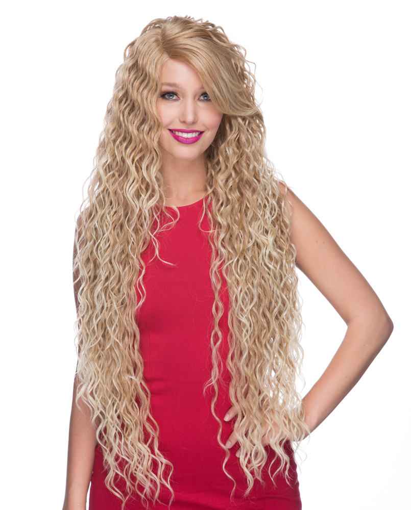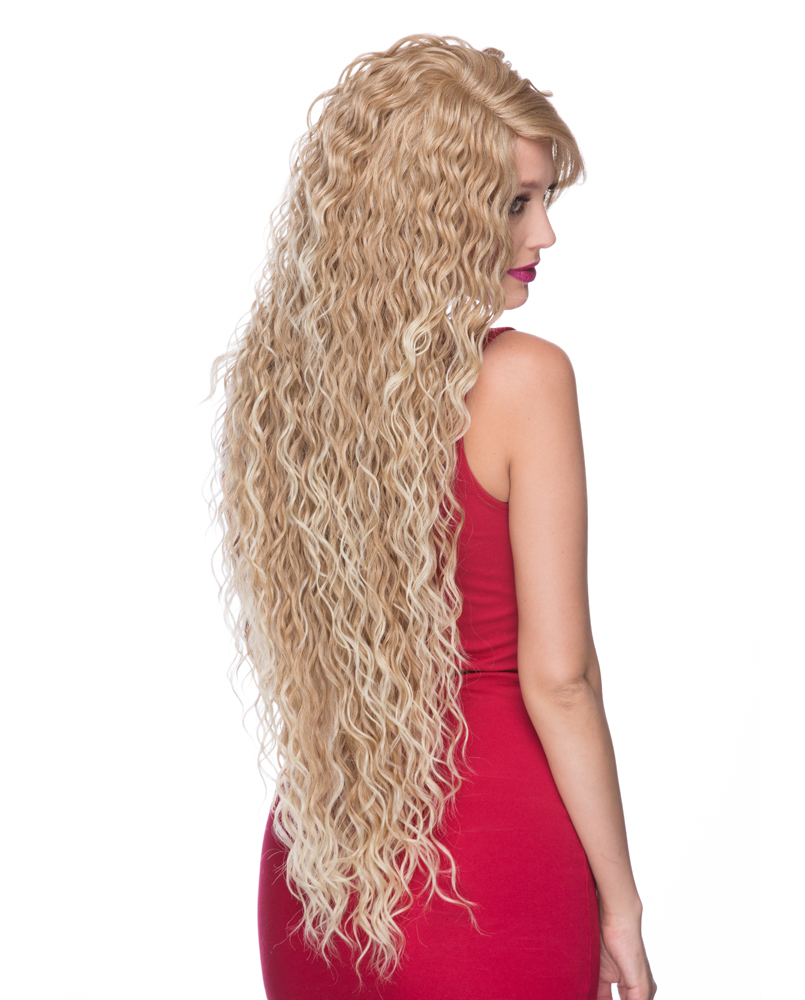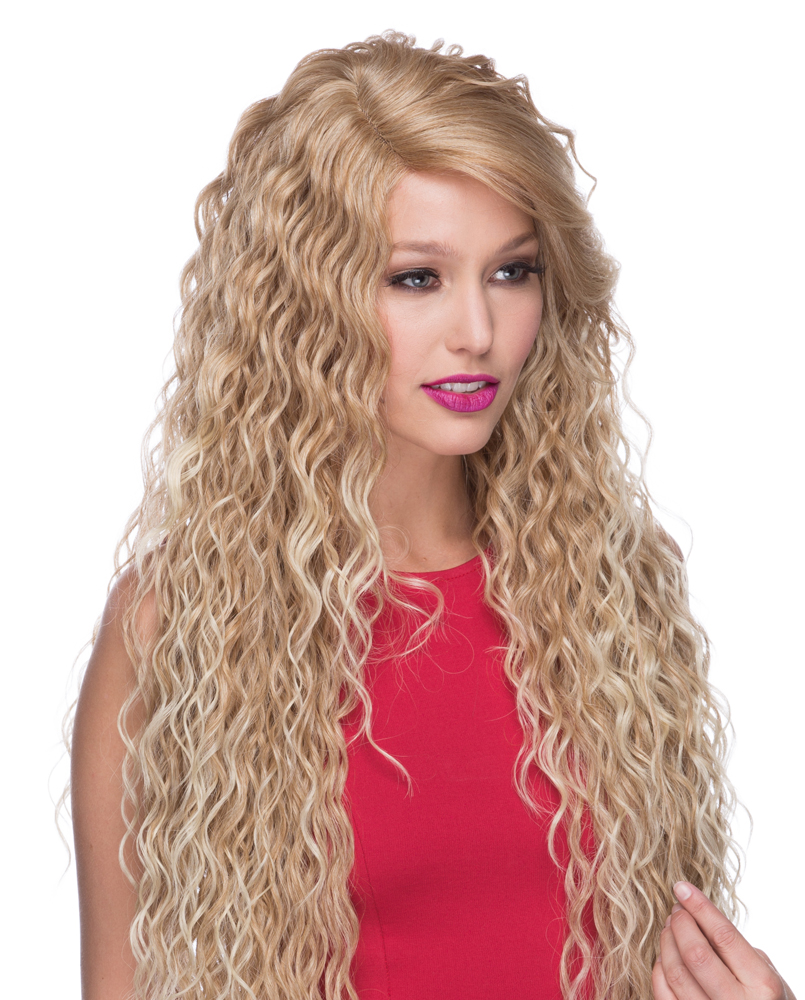 CALLING ON YOUR INNER MERMAID, WE HAVE A LACEFRONT WIG THAT WILL KNOCK YOUR SHELLS OFF. CURLS RIPPLE DOWN WELL PAST YOUR WAIST IN THIS OVER-THE-TOP WIG, FINISHED OFF WITH LONG, STRAIGHT BANGS THAT COMPLIMENT THE LOOK.