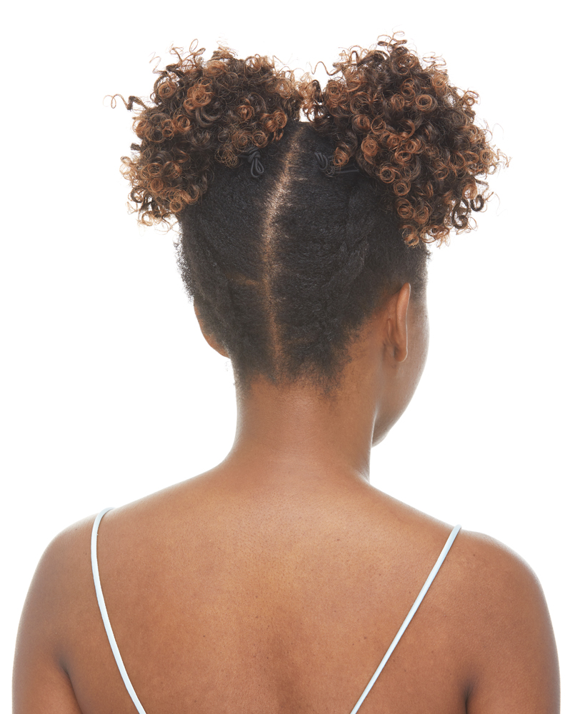 HAIRSTYLES FOR YOUR LITTLE ONE JUST GOT EASIER WITH OUR MINI PUFF WHICH INCLUDES 2 ATTACHABLE HAIR PIECES THAT SECURE WITH A DRAWSTRING AND COMB FOR ADDED SECURITY. JUST ATTACH AND GO!
