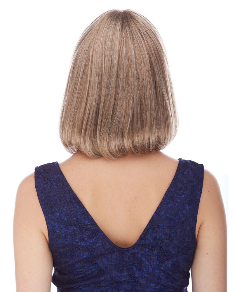 A FUN RETRO LOOK THAT IS STYLED WITH ITS ENDS TUCKED IN AND FULL BANGS.