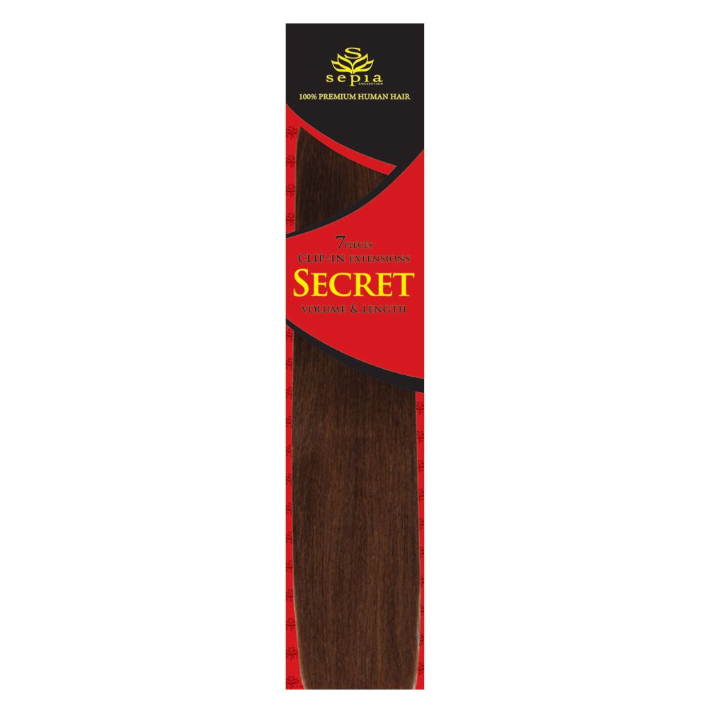 SEPIA COLLECTION BRINGS YOU SECRET CLIP IN EXTENSIONS. IT INCLUDES 7 EXTENSION PIECES IN VARIOUS WIDTHS TO CUSTOM FIT TO YOUR PREFERENCE. YOU CAN ADD VOLUME AND LENGTH IN JUST MINUTES WITH SILKY AND LUXURIOUS PREMIUM HUMAN HAIR. AVAILABLE IN A VARIETY OF LENGTHS FROM 14″ TO 24″.