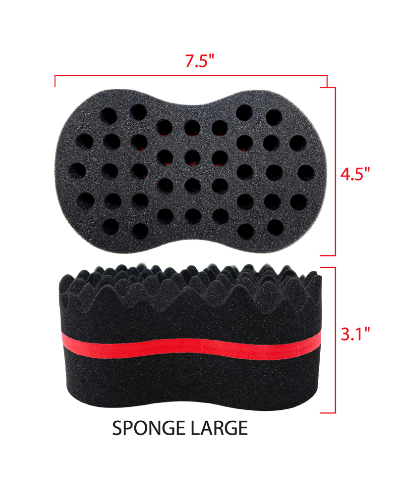 A LARGE DUAL SIDED HAIR TWIST SPONGE MADE FOR HOME USE TO EASILY CREATE DREADS OR TWISTS .