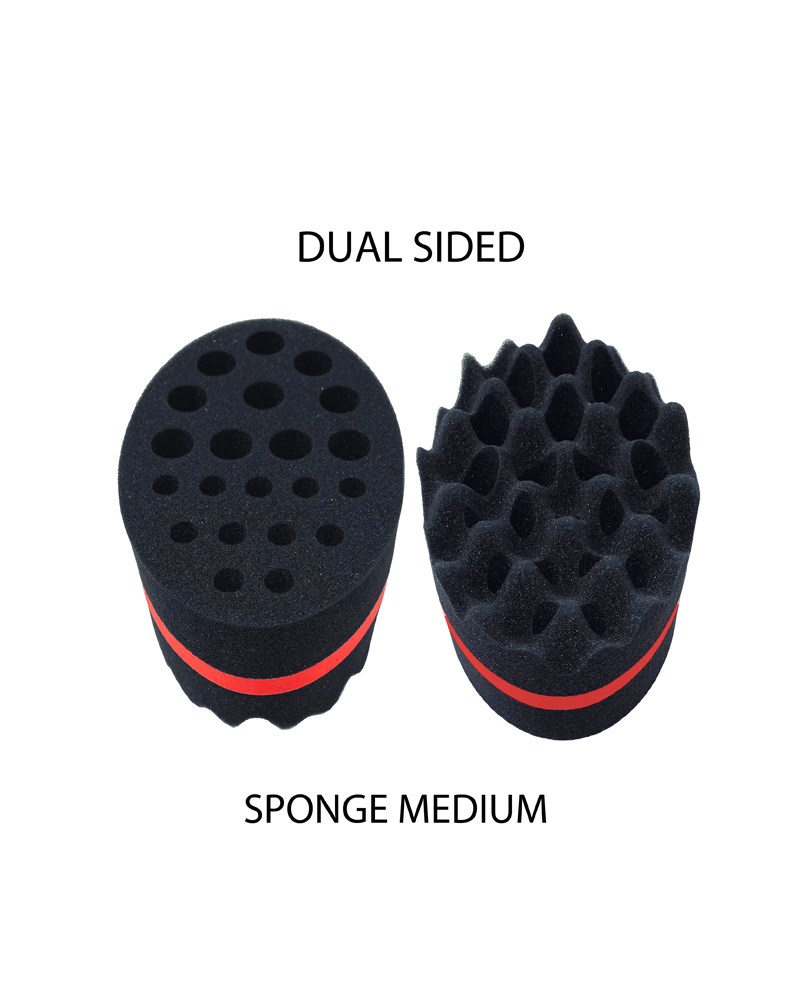 A MEDIUM SIZED DUAL SIDED HAIR TWIST SPONGE MADE FOR HOME USE TO EASILY CREATE DREADS OR TWISTS .